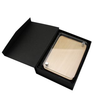The Frida Wood & Glass Award comes in a black satin lined gift box.