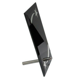 Your custom message or artwork can be uploaded with your order or emailed after your transaction is complete. Engraving can be done on the back of the award, we laser engrave through the black so that the text or artwork shows through as frosted white.