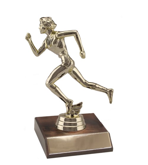 The Athletics Female Figurine Trophy features a stylised gold figure running, paired with a base of your choice. We have a wide selection of bases including wooden and neutral colours, bright vibrant colours, or even a marbled textured look. Any one of these bases paired with the figurine will make your award pop! Customise your engraving to complete the look at no additional cost.