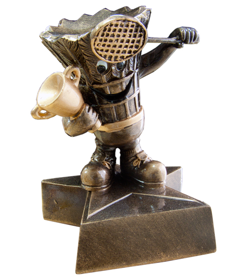 The Badminton Mini Star Trophy features a shuttlecock character, holding a racket and bright gold trophy. An economical resin trophy, hand-painted in traditional antique gold mounted on a star-shaped base. Customise your engraving to give your award that personalised touch at no additional cost. We have a range of sports medals and awards to complete your collection. Great for team or individual awards.