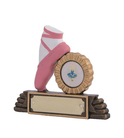 The Ballet Shoe & Rosette Award features a blush pink point ballet shoe with ribbons and a Golden Rosette, presented on top of the decorative base. An economical resin trophy, hand-painted in blush pink, white, bright gold and traditional antique gold colours. The Ballet Shoe & Rosette Award is available in three sizes, with all featuring a 25mm centre space where you can upload your own artwork or image to give a unique look to your trophy. We have a large range of dance trophies all available online to complete your collection. Great for team or individual awards.