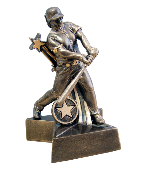 The Superstar Softball/Baseball Award features a figure playing and holding a bat. With a shooting star behind mounted on top of a star-shaped base. An economical resin trophy, hand-painted in traditional antique gold. The Superstar Award is available in three sizes, all featuring a 25mm centre space where you can upload your own artwork or image to give a unique look to your trophy. We have a large range of sports trophies all available online to complete your collection. Great for individual or team awards.
