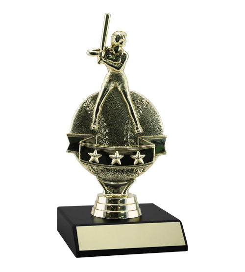 The Victory Batter & Ball – Female and Base Trophy features a golden baseball/softball figure holding a bat, paired with a base of your choice. We have a wide selection of bases including wooden and neutral colours, bright vibrant colours, or even a marbled textured look. Any one of these bases paired with the figurine will make your award pop! Customise your engraving to complete the look at no additional cost.