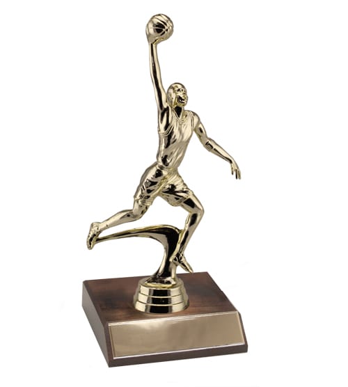The Basketball Shooter & Base Trophy features a bright golden figure playing and reaching with a ball, paired with a base of your choice. We have a wide selection of bases including wooden and neutral colours, bright vibrant colours, or even a marbled textured look. Any one of these bases paired with the figurine will make your award pop! Customise your engraving to complete the look at no additional cost.