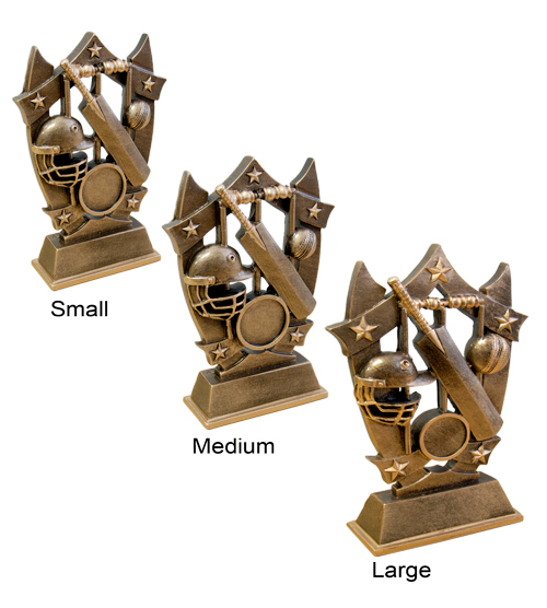 The All Stars Cricket Trophy is a hand-painted antique gold resin trophy, that features a stylised cutout shape, with a cricket ball, bat, helmet and wickets connected together surrounded by stars. All mounted onto a two-layered resin base. This award is available in three sizes. Each size has a space for a 25mm diameter image insert which you can choose from our standard collection of images. Alternatively, you can upload your very own custom image, for a small additional fee, to create a beautiful and unique award. Perfect for any team or individual awards.