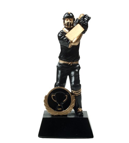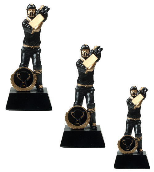 The Batsman Black Trophy feature a detailed batsman figure holding a bat mounted on a glossy black base. An economical resin trophy, hand-painted in black and traditional antique gold. The Batsman Black Trophy is available in three sizes, all featuring a 25mm dia. image insert space. Choose one of our standard images, or upload your own artwork for a small additional fee. We have a large range of sports trophies all available online to complete your collection. Great for individual or team awards.