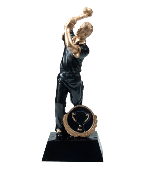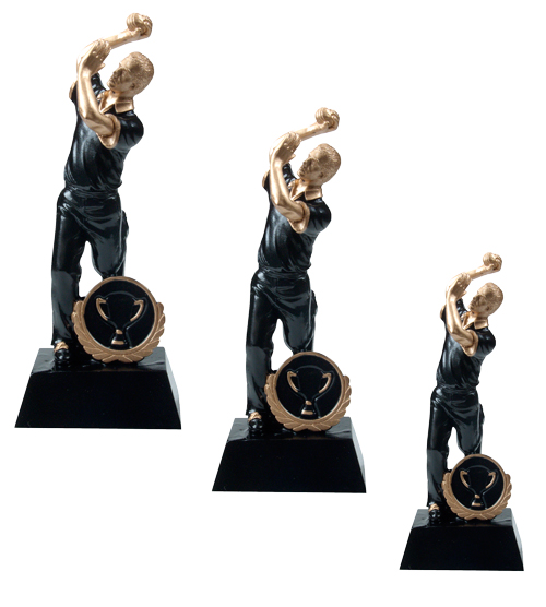 The Bowler Black Trophy feature a detailed bowler figure holding a ball mounted on a glossy black base. An economical resin trophy, hand-painted in black and traditional antique gold. The Bowler Black Trophy is available in three sizes, all featuring a 25mm dia. image insert space. Choose one of our standard images, or upload your own artwork for a small additional fee. We have a large range of sports trophies all available online to complete your collection. Great for individual or team awards.
