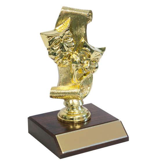 The Drama Mask Figurine and Base trophy feature bright gold comedy and tragedy faces attached to a textured swirling ribbon. Paired with a base of your choice. We have a wide selection of bases including wooden and neutral colours, bright vibrant colours, or even a marbled textured look. Any one of these bases paired with the figurine will make your award pop! Customise your engraving to complete the look at no additional cost. Check out our wide selection of sports awards and medals to complete your collection.