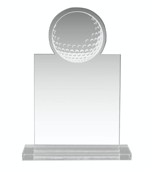 The Acrylic Golf Award is a 10mm thick, clear acrylic, featuring a frosted detailed Golf Ball on top of a 120x120mm engravable area. The engraving is completely customisable by uploading your own artwork or logo, or emailing us once your order has been completed. Laser engraving gives a crisp and clear finish to your award. We have a range of golf awards to complete your collection. Perfect for individual or team awards.