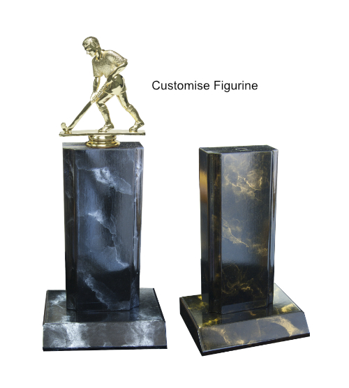 The Wood Tower Marble Trophy is a customisable trophy that will stand out in your team or club awards. This award features a marble tower and base. Your choice of any standard figurine mounted on top. The Wood Tower Marble Trophy comes in five sizes, perfect for any award presentation. We have a range of sports trophies all available online. Great for any team or individual awards.