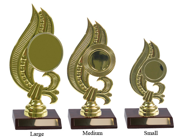 The Decorative Holder trophy features a circle with stylised curved leaves, with stripes on either side with beads down the middle. The leaves supporting the circle in the middle changes depending on the size of the trophy you have chosen. Small and Large have a circle the perfect size for either the 25mm dia. or 50mm dia. Image. The Medium has a decorative band surrounding the 25mm dia. Image insert space. No matter the size, you can choose any of our standard images, or alternatively you can send us your own artwork for a small additional cost. We have a wide selection of bases including wooden and neutral colours, bright vibrant colours, or even a marbled textured look. Any one of these bases paired with the figurine will make your award pop! The Decorative Holder is perfect for any team, event or individual awards. Check out our wide selection of sports awards and medals to complete your collection.