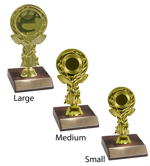 The Wing Holder trophy features a circle with an embossed flora arrangement, along with textured ribbon, that give the effect of being tied together. The circle at the top changes depending on the size of the trophy you have chosen. Small and Large have a circle the perfect size for either the 25mm dia. or 50mm dia. Image. The Medium has a decorative band surrounding the 25mm dia. Image insert space. No matter the size, you can choose any of our standard images, or alternatively you can send us your own artwork for a small additional cost. We have a wide selection of bases including wooden and neutral colours, bright vibrant colours, or even a marbled textured look. Any one of these bases paired with the figurine will make your award pop! The Wing Holder is perfect for any team, event or individual awards. Check out our wide selection of sports awards and medals to complete your collection.
